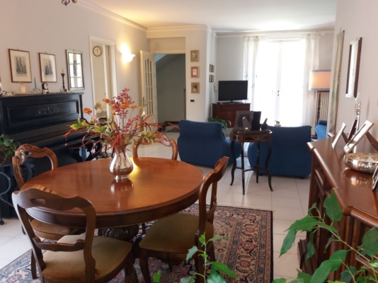 La villa si compone di una parte principale costituita da ampio e godibile soggiorno con terrazzo, cucina abitabile, 4 camere matrimoniali, taverna con camino, 3 bagni, cantina e garage. Una seconda unitą con ingresso separato composta da soggiorno, cucina, camera e bagno utilizzata come resede per ospiti o locazione turistico/residenziale. Le due unitą attualmente separate sono facilmente collegabili. Spazio esterno recintato e piantumato. Villa di lodevole fattura con prezzo adeguato. |