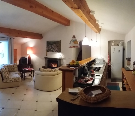 | In collina, caratteristico contesto di borgo in pietra, casa semi indipendente completamente ristrutturata composta da ampio soggiorno d'ingresso con camino e terrazza, zona cottura separata con penisola, camera matrimoniale e spazioso bagno finestrato. Al piano superiore vano mansardato utilizzabile come seconda camera. Grande cantina con soffitto a volta e piccolo giardino antistante. |