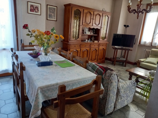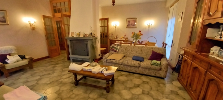 Ingresso, grande salone con zona pranzo e camino in pietra, cucina abitabile, due camere e bagno. Terza camera e secondo bagno al piano superiore. Due grandi balconi, abitabile da subito, vista aperta ed ottima esposizione solare |