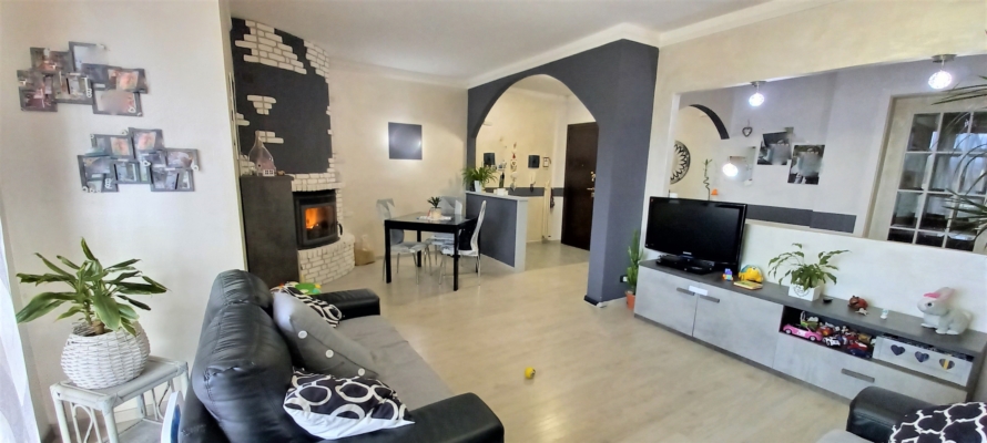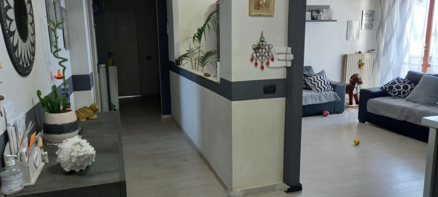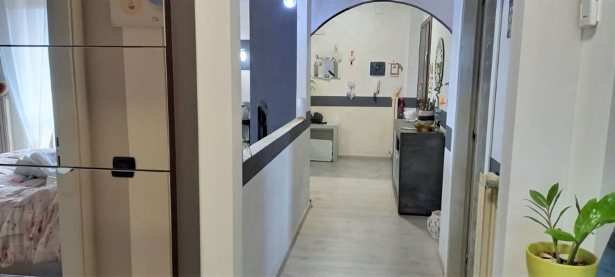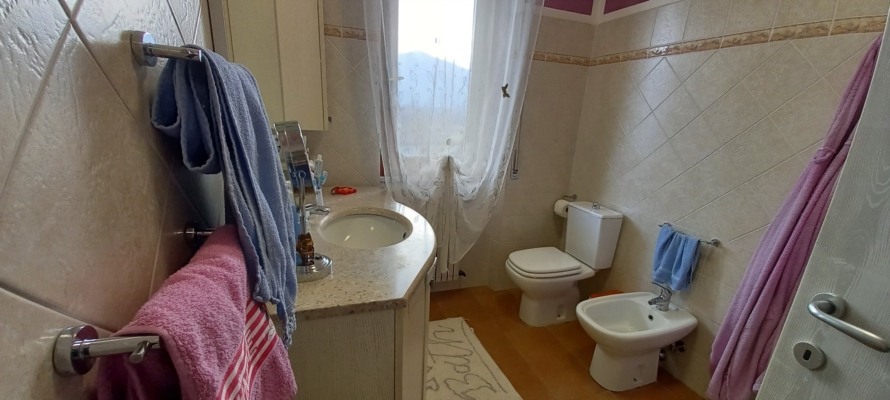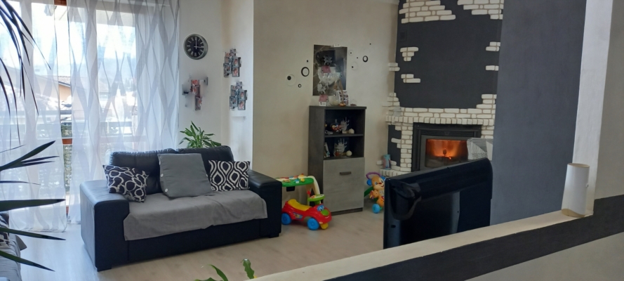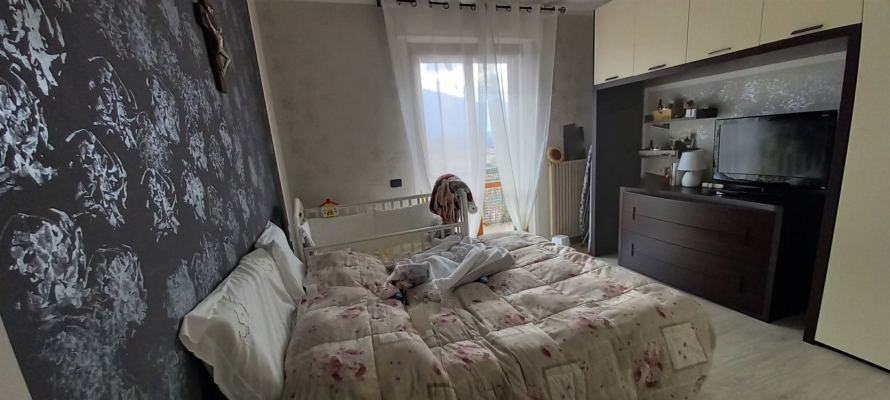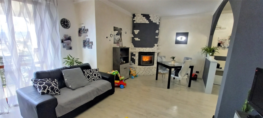 Spazioso soggiorno con camino e grande balcone panoramico, cucina abitabile, due camere matrimoniali e bagno. Riscaldamento autonomo, aria condizionata, spese condominiali minime. |